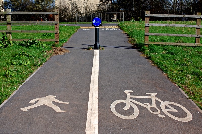 People cycling, riding a horse or driving a horse-drawn vehicle should respect the safety of people walking, but people walking should also take care not to obstruct or endanger them.